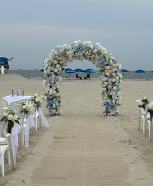Atrium at Sunny Atlantic is a scenic oceanfront venue completely enclosed in glass. The ceiling opens up for an “al fresco” experience offering a “destination experience” that’s right here at home in our unique event space. We feature the only retractable glass enclosure — facing the Atlantic Ocean — in Atlantic Beach New York.