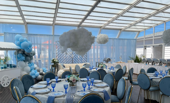 Atrium at Sunny Atlantic is a scenic oceanfront venue completely enclosed in glass. The ceiling opens up for an “al fresco” experience offering a “destination experience” that’s right here at home in our unique event space. We feature the only retractable glass enclosure — facing the Atlantic Ocean — in Atlantic Beach New York.