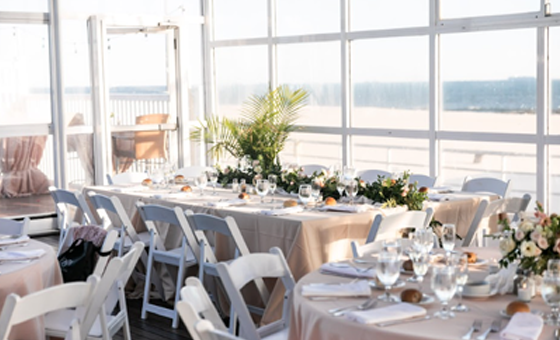 On a sunny day our movable glass covering opens up to the sky and a 2,000 square foot deck. All of it directly facing the ocean for a panoramic view of the sun, the moon and the stars. On days with less-than-ideal weather our fully enclosed glass canopy slides into place at our unique event space. This allows your special event to continue in climate controlled comfort. Rain or shine it all happens with a view that makes your affair incredibly memorable.